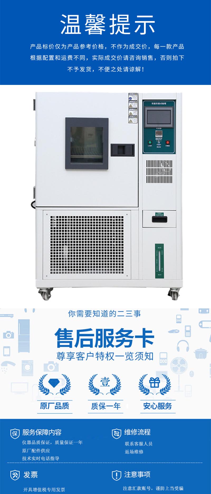 保護裝置:壓縮機過熱保護,過流保護,超壓保護,加熱加濕空焚保護,試驗箱超溫保護,缺水報警