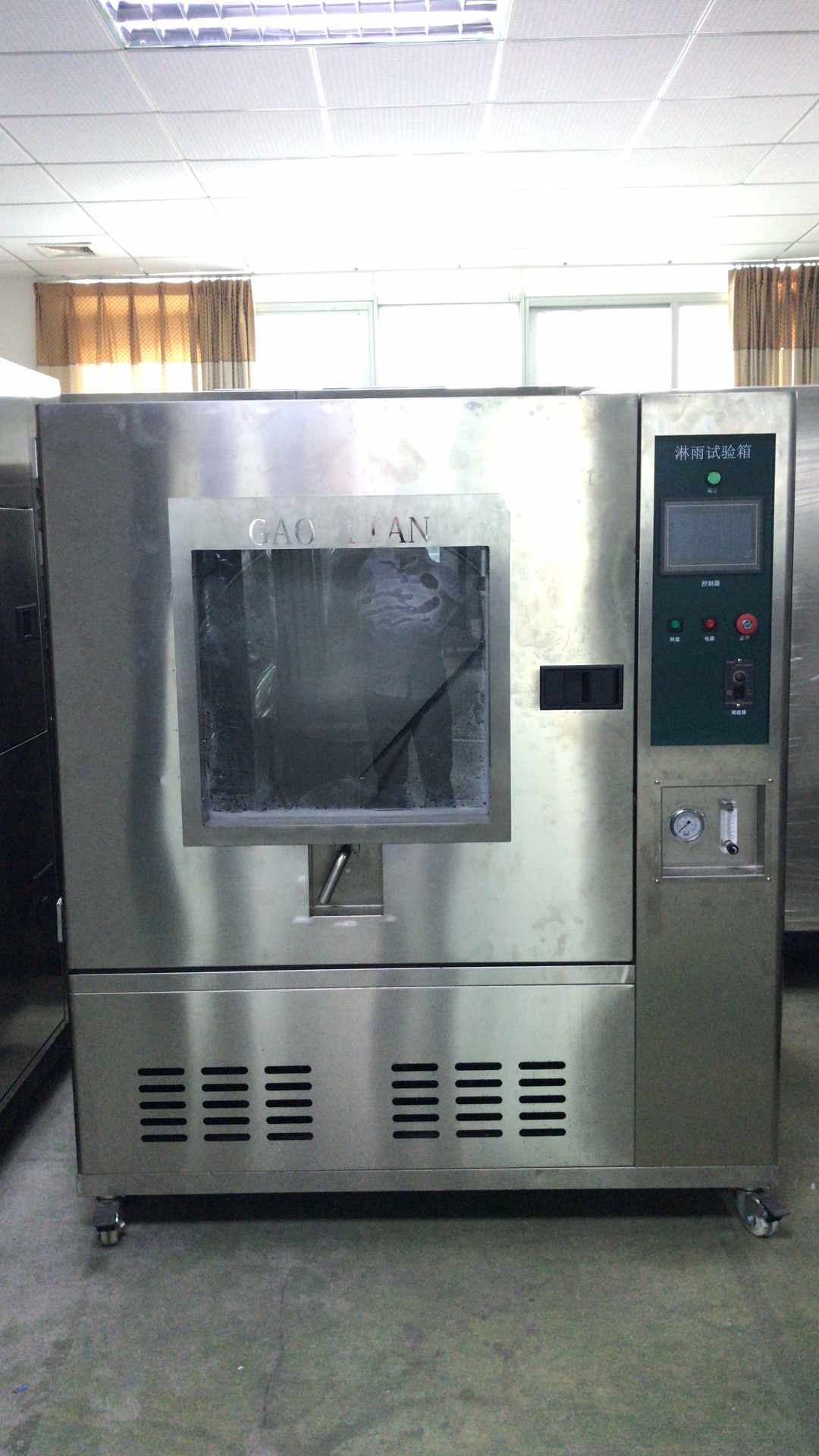 走進(jìn)全面的控制系統(tǒng)以及變頻技術(shù)的采用,使得降雨量試品架的回轉(zhuǎn)角度,噴水?dāng)[桿的擺動(dòng)角度以及噴水量擺動(dòng)頻率都可自動(dòng)的調(diào)節(jié)。